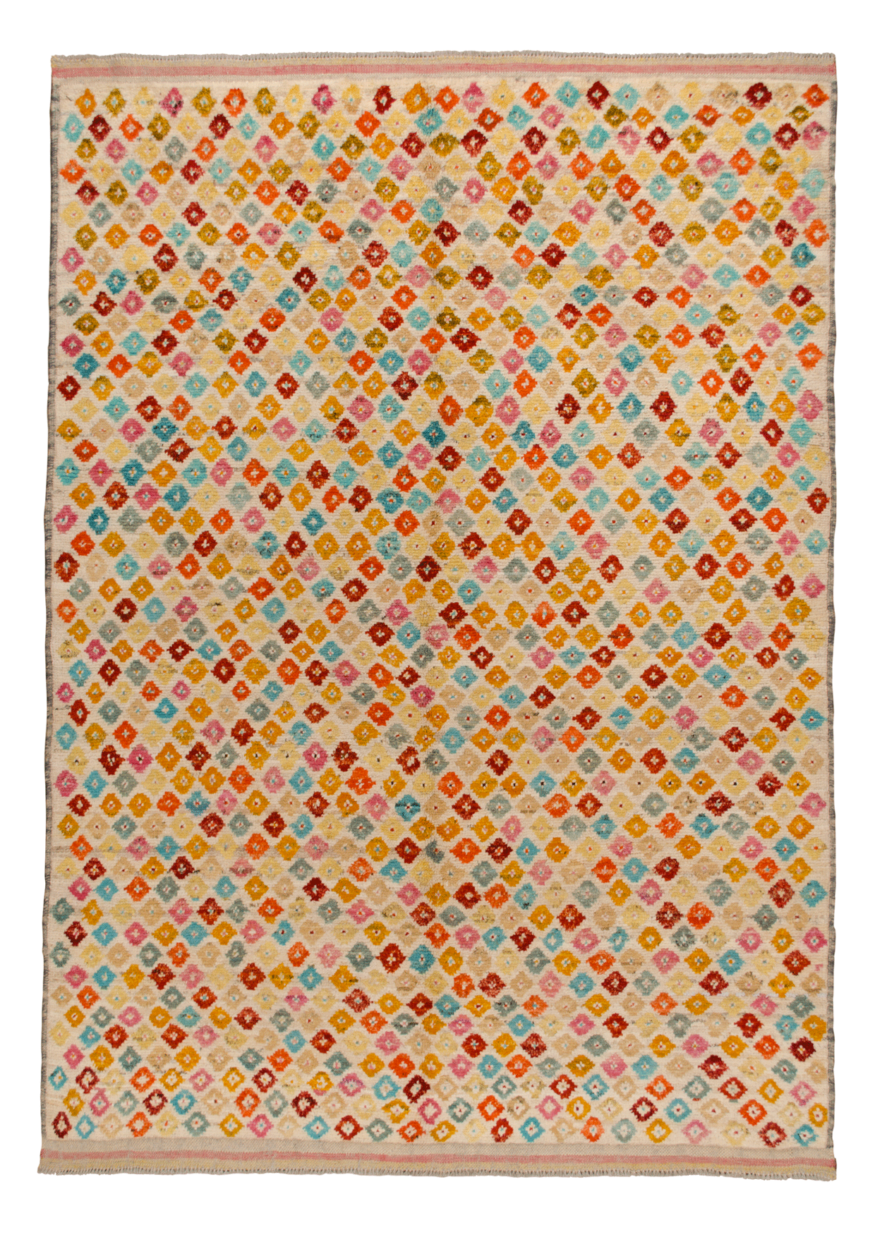Contrariamente a quanto dice il nome, i tappeti beluchi non provengono dal Belucistan, regione della Persia sud-orientale che si estende lungo il confine con il Pakistan: essi sono originari della parte orientale della regione persiana del Khorassan e di una vasta area del Afghanistan occidentale confinante con la persia. I Beluchi sono quasi esclusivamente tappeti di lavorazione nomade annodati per la maggior parte dalle tribu' Beluchi. L'ordito e la trama dei beluchi sono in lana, con eccezione di una ridotta produzione moderna proveniente in gran parte dalla regione di Turbat- i-Haidiri, situata a sud di Meshed, che utilizza il cotone. La trama, salvo poche eccezioni, è composta da un solo filo. Il vello è in lana di buona qualità, piuttosto opaca, tagliata a media altezza. Spesso il vello è in lana di cammello nel suo colore naturale. Il nodo è il farsibaft e la densità varia da 100.000 a 150.000 nodi per metro quadrato. Le dimensioni dei beluchi sono normalmente piccole, come quelle dei tappeti preghiera: cm 80-100 x 120-170; rare le dimensioni piu grandi e quasi esclusivamente in tappeti di vecchia manifattura. La maggior parte dei beluchi sono tappeti preghiera decorati con una varietà di motivi cosi ricca per cui non è possibile una descrizione completa ed esauriente: a titolo esemplificativo, tra le decorazioni dei beluchi preghiera ne ricordiamo una con il campo ricoperto da uno stilizzato albero della vita, un'altra che raffigura le cupole di una moschea, un'altra ancora con il campo decorato da un susseguirsi di figure geometriche. Tuttavia questi tappeti sono ugualmente riconoscibili, sia per i materiali usati nella lavorazione, sia per i colori della netta prevalenza di varie tonalità cupe di rosso e di blu nel campo e nelle decorazioni, sia per le bordure, a numerose cornici decorate con greche, semirette oblique a colori alterni, rombi e triangoli con un vertice in comune, e che utilizzano sovente il bianco, il giallo, l'arancione; sia sopratutto per una certa impronta di gusto comune pur nella diversità dei singoli disegni. Anche i Beluchi non preghiera sono riconoscibili per gli stessi elementi e per lo stesso gusto: in questi tappeti le decorazioni piu frequenti sono il gul bokhara e il motivo minah-khani.